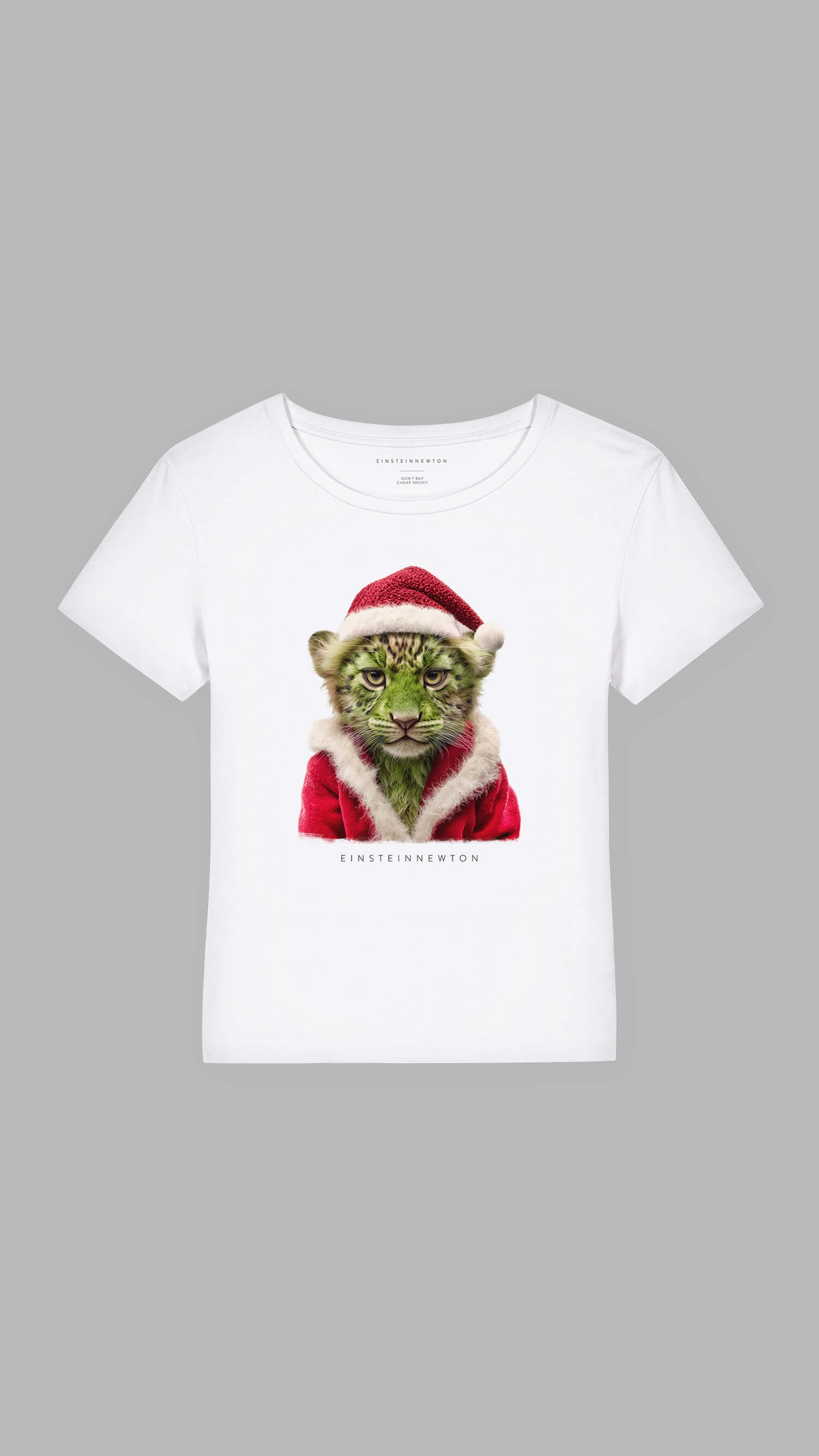 Wenn der Grinch auf Glamour trifft 🐆💚 Dieses T-Shirt ist ein echter Hingucker für alle, die Weihnachten mit Attitüde feiern. Der grün getönte Leopard im roten Santa-Mantel schaut zwar ein bisschen grummelig, aber genau das macht seinen Charme aus – cool, wild und einfach unverwechselbar 🎅✨